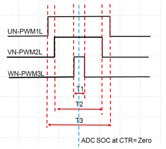也就是每个 PWM 周期的起点采样,采样时刻如下图所示: