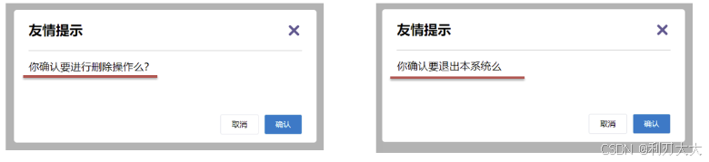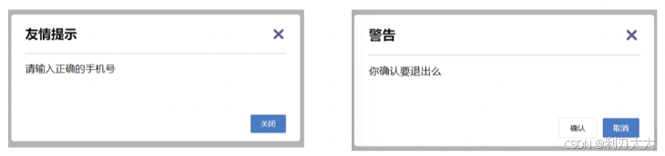 让组件内部的一些结构支持自定义,比如下面提示框中只有提示内容不同,而标题跟按钮都是不变的,要提高复用性的话,就可以使用插槽!
