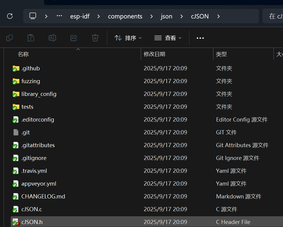 比如说引用了一个#include "cJSON.h"那么我们就需要在cmakelist里面REQUIRES json这样引用一下,不同版本的esp-ide可能会导致名字不同,这个需要自己注意一下,如果不引用的话就会报头文件找不到,但是,我们如果是在main函数中声明头文件的话,就不会报这个错误,因为构建系统会对这个main组件进行特殊处理,其他的组件会自动的作为它的依赖被添加到构建系统中,