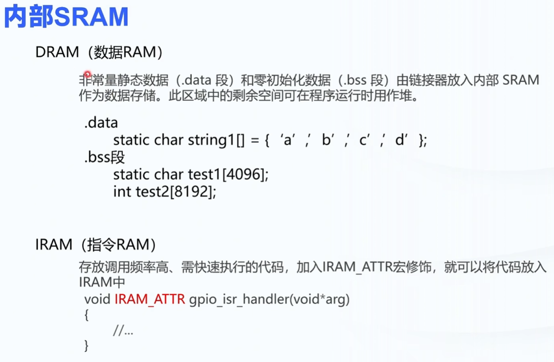 IRAM_ATTR修饰中断函数,就是强制将函数放到 5 号内部 SRAM 指令总线