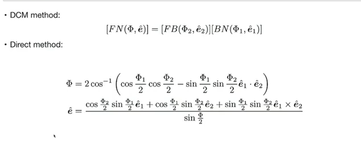 - 定义与构成等价性:在姿态表示中,欧拉参数与单位四元数通常指代同一概念。坐标构成:由四个参数组成 β=[β0,β1,β2,β3]T\boldsymbol{\beta} = [\beta_0, \beta_1, \beta_2, \beta_3]^Tβ=[β0,β1,β2,β3]T。标量部分 (β0\beta_0β0):β0=cos(ϕ/2)\beta_0 = \cos(\phi/2)β0=cos(ϕ/2)。描述旋转的大小。矢量部分 (ϵ\boldsymbol{\epsilon}ϵ):β1,2,3=e^sin(ϕ/2)\beta_{1,2,3} = \hat{e} \sin(\phi/2)β1,2,3=e^sin(ϕ/2)。描述旋转轴及其分量。