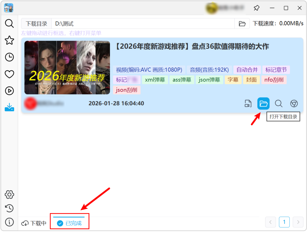 下载完成后,点选底部已完成,再打开具体目录。