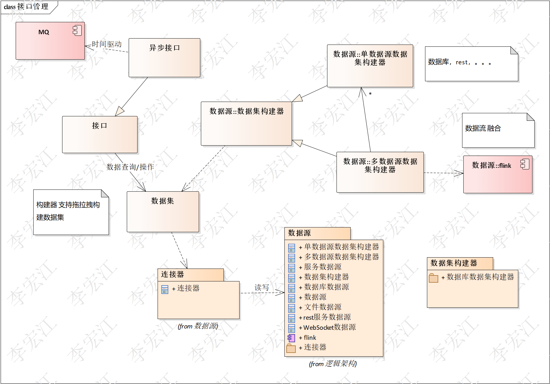 数据集统一接口读写数据源接口,提供大粒度面向业务的api,定制化的数据;支持多数据源融合,引入flink,多数据源通常时长在分钟级