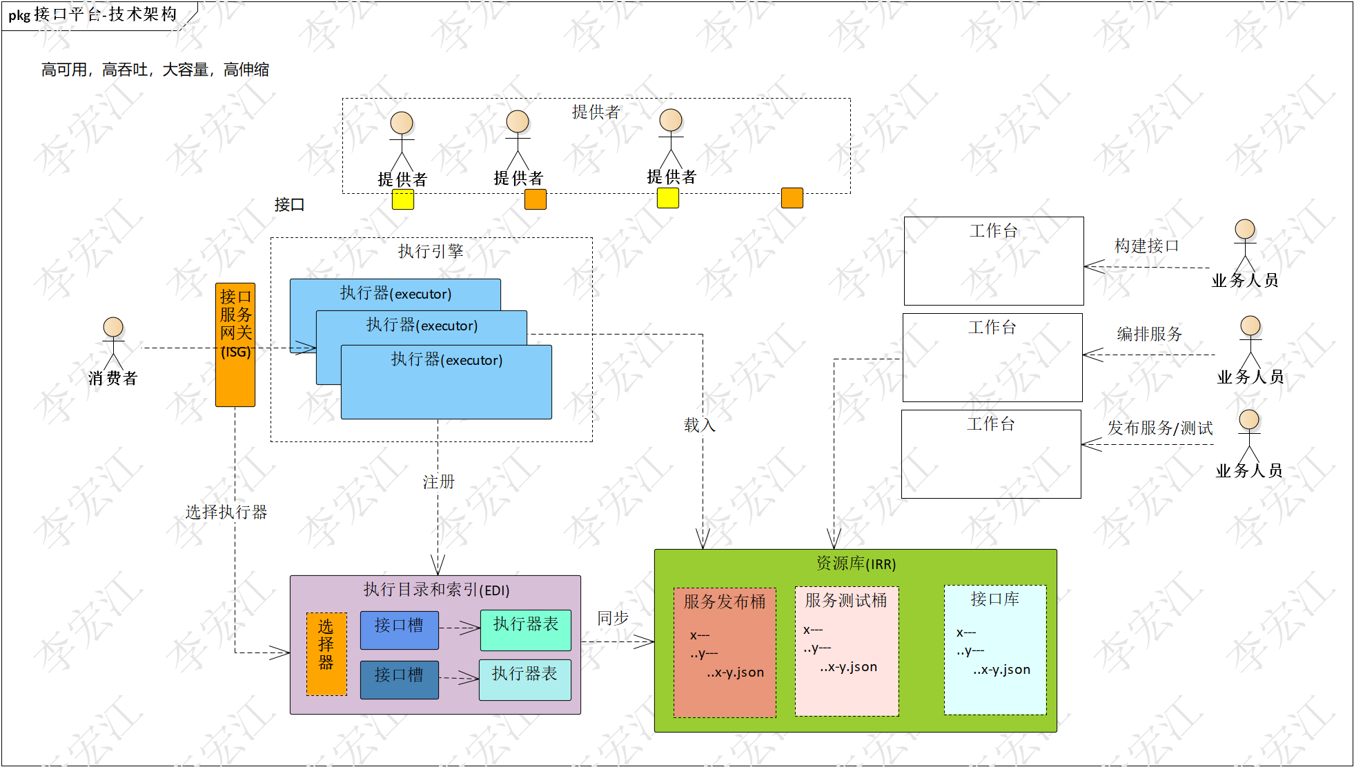 本节介绍接口平台的技术架构,介绍平台运行逻辑,实现高可用,高吞吐(百万QPS),大容量(百万接口),高伸缩等架构要求
