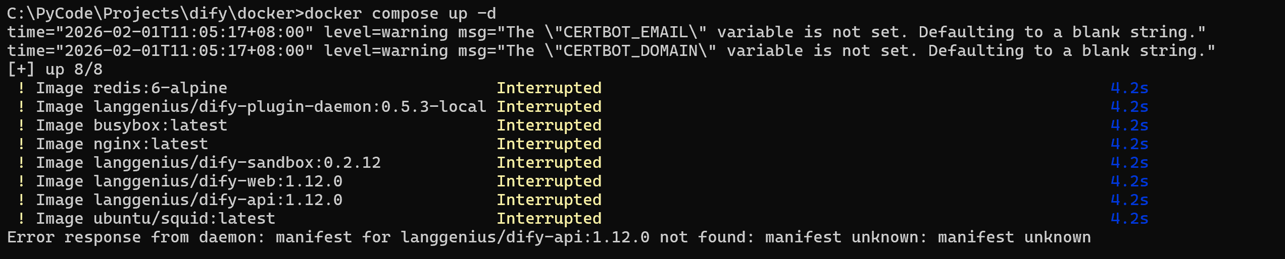 Error response from daemon: manifest for langgenius/dify-api:1.12.0 not found: manifest unknown: manifest unknown