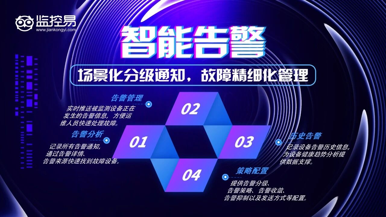 无论是金融行业的高可用要求,还是互联网企业的快速迭代需求,监控易都能提供稳定可靠的支撑。其四级部署架构更适用于大型集团型企业,实现总部统览、分中心自治的分级管理模式,兼顾集中管控与灵活性。