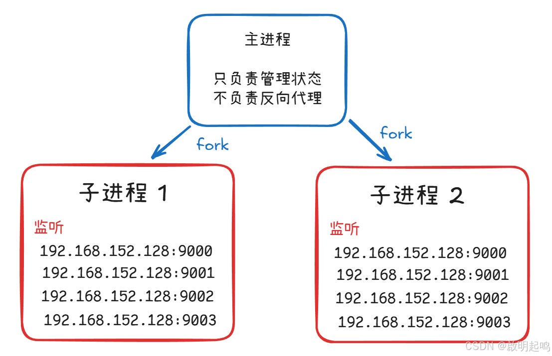 答案就是:每个进程都开启相同数量的服务器,分别监视同一批的端口