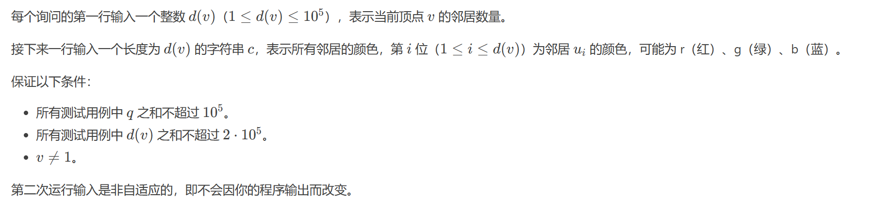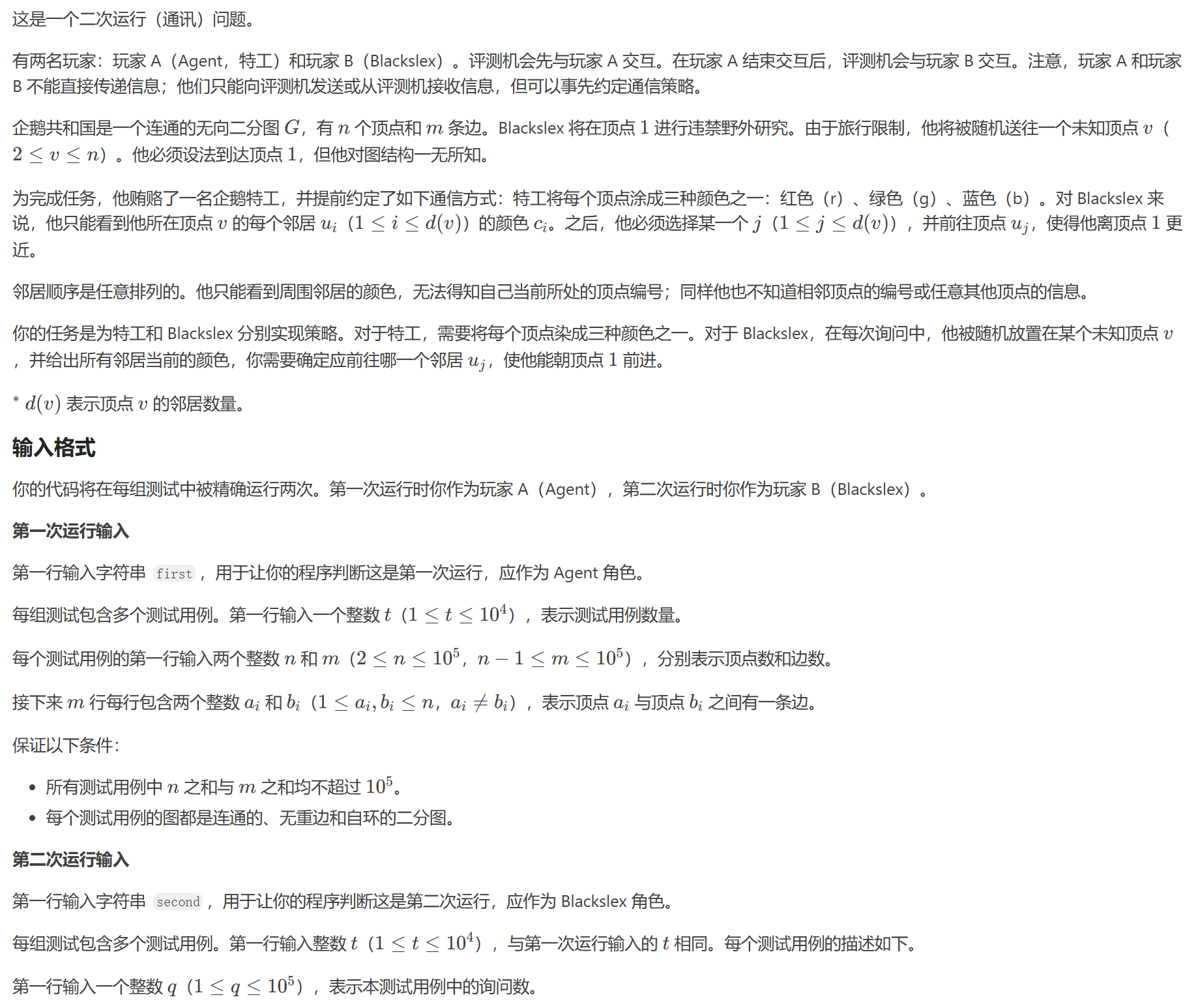 - 玩家b再根据相邻节点颜色从任意一点走到节点1,b不知道整个图的情况和所在节点的颜色,需要仅通过邻居颜色推导方向