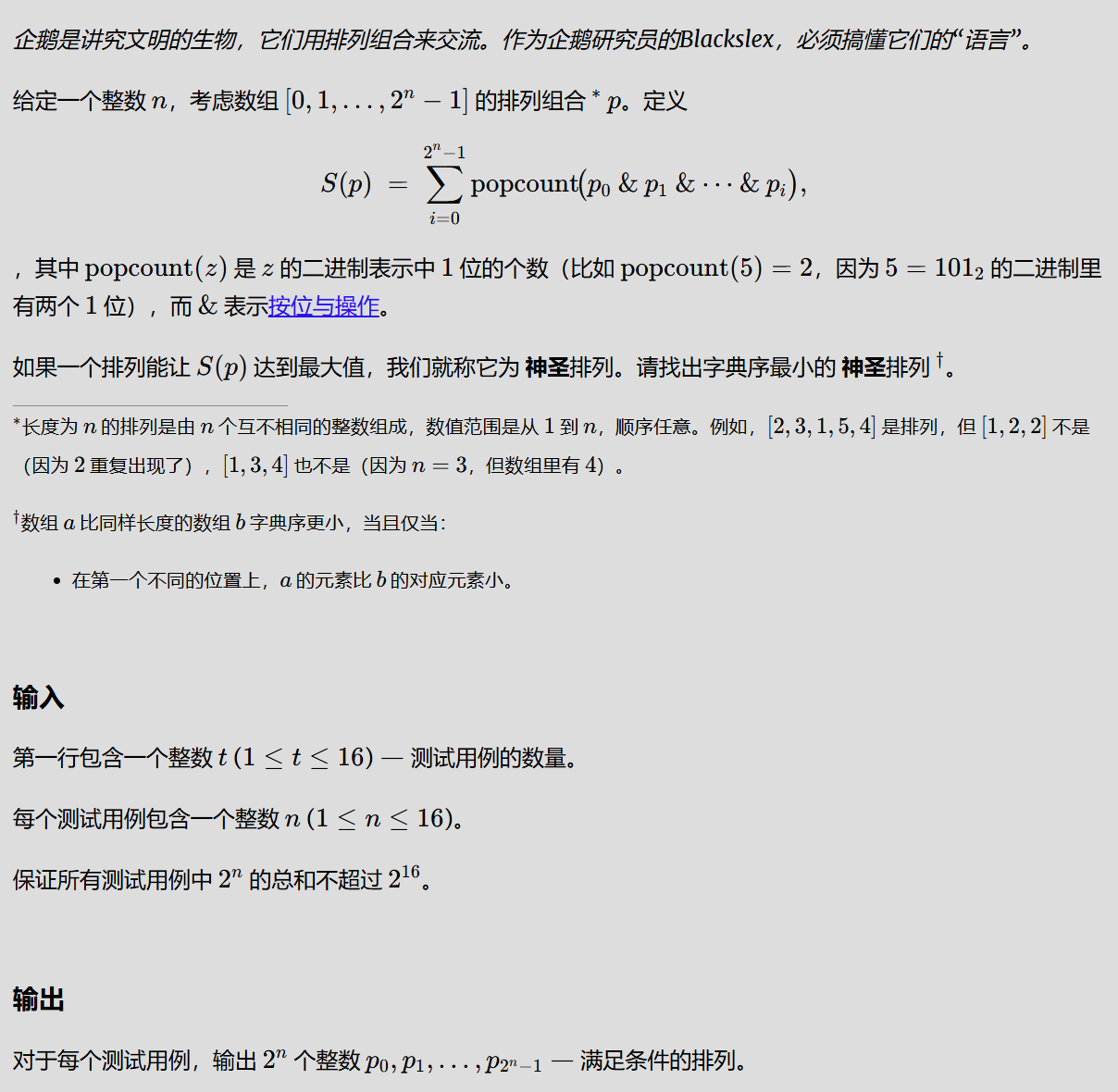 容易想到把1对齐,固定 n o w now now个位上一直有1 ( n o w = n , n − 1 , . . . , 1 , 0 ) (now=n,n-1,...,1,0) (now=n,n−1,...,1,0),其他位上随便枚举