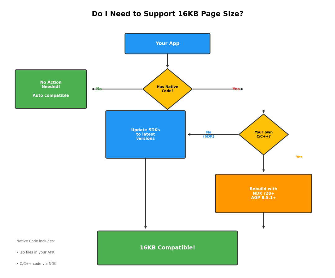 如果你的Native代码中有任何地方假设页面大小是4096字节,或者使用了PAGE_SIZE常量,那就需要修改了。