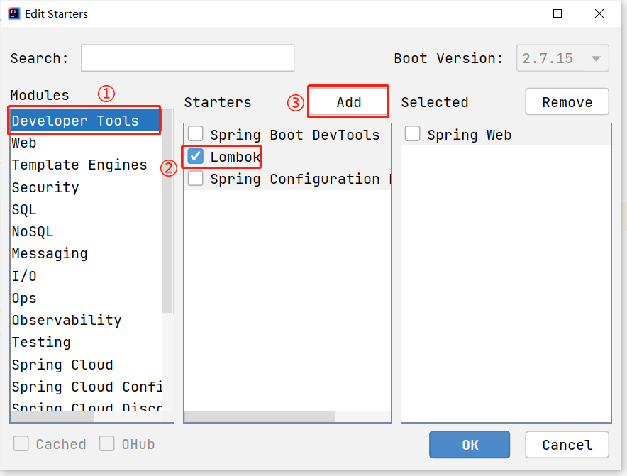 并非所有依赖都能在此处直接添加------该界面与 Spring Boot 项目创建界面类似。