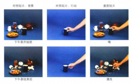 动作意图层次即执行整个行为动作的意图、原因。当我们对动作进行理解时,虽然动作即时目标相同,但动作者背后的动机、意图可能千差万别,如抓取杯子可能是为了喝水也可能是为了清洗。如何确定其动作动机、信念和意图,就需要在理解动作即时目标的基础上,综合情景、经验等各方面信息进行推理,这也会涉及更高层次的认知功能。