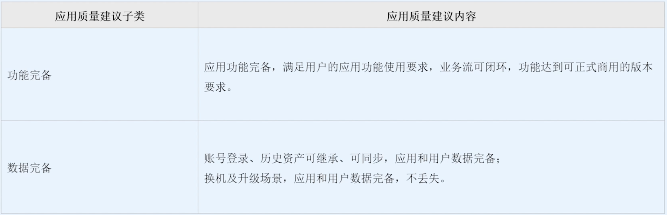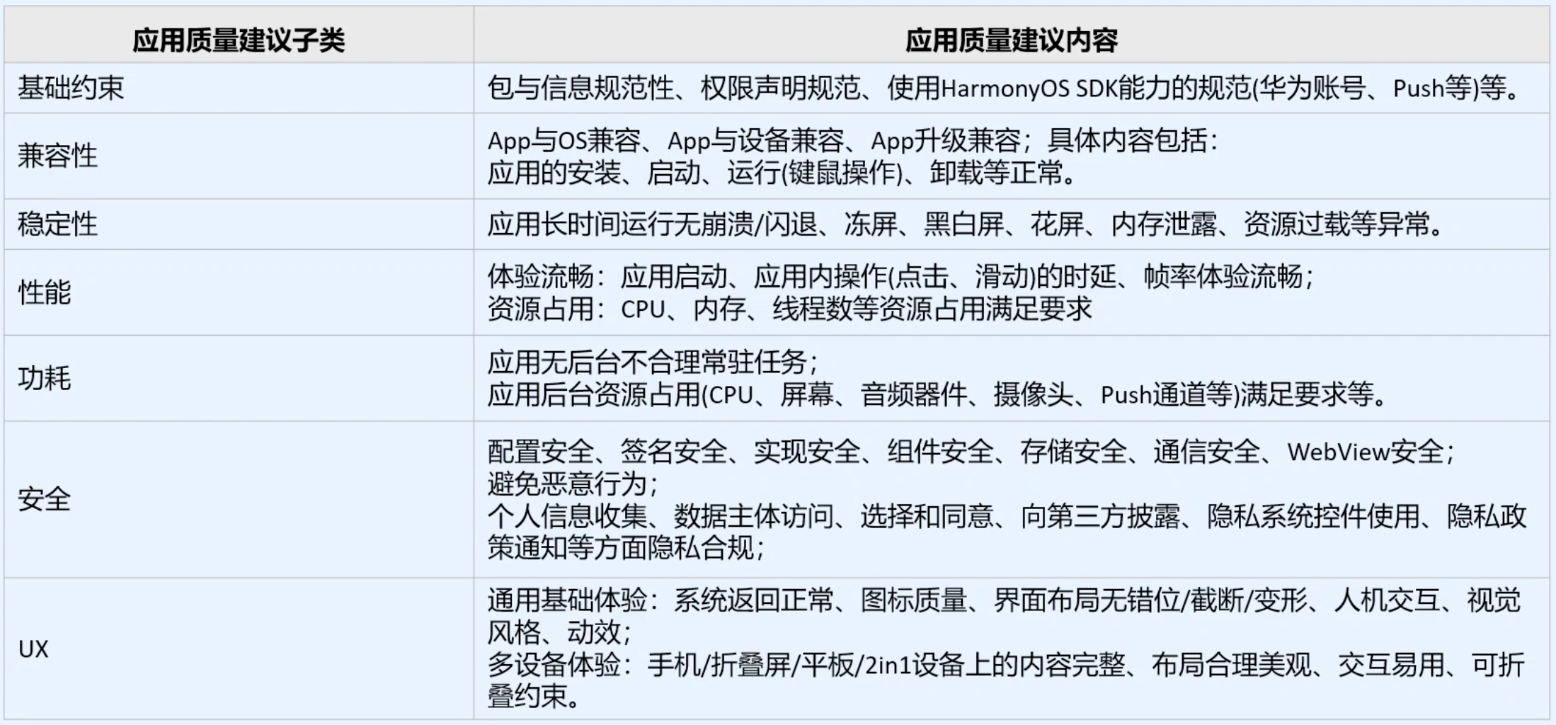 应用质量要求分应用体验质量建议和应用内容合规要求两大部分: