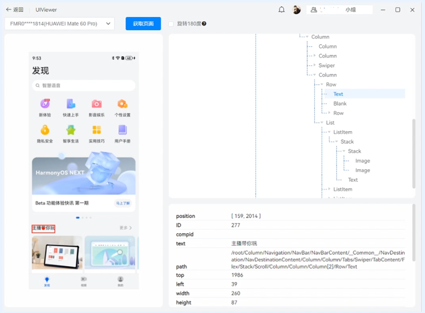 1)、选择DevEco Testing -> 实用工具 -> Ul Viewer;