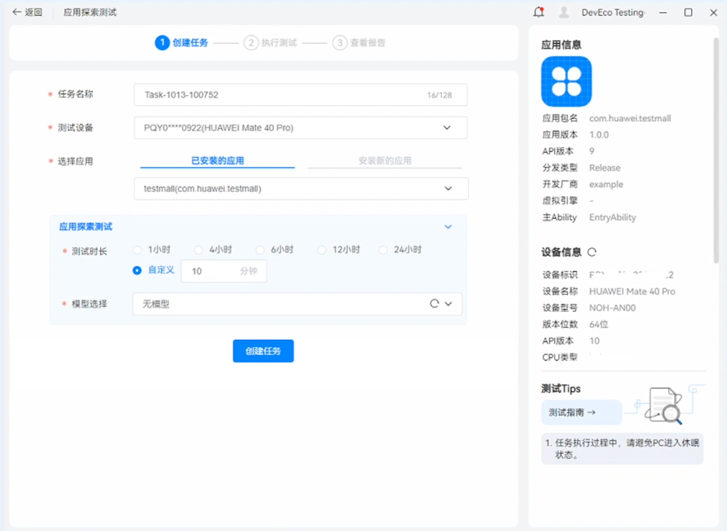 - DevEco Testing是一款单机使用的专项测试工具,针对应用的开发和测试提供了相应的测试能力。DevEco Testing将测试能力以测试服务卡片形式的呈现给开发者和测试人员,可方便一键执行测试任务,并提供了测试报告和分析,辅助开发者和应用测试人员发现应用和产品问题,保障应用质量。