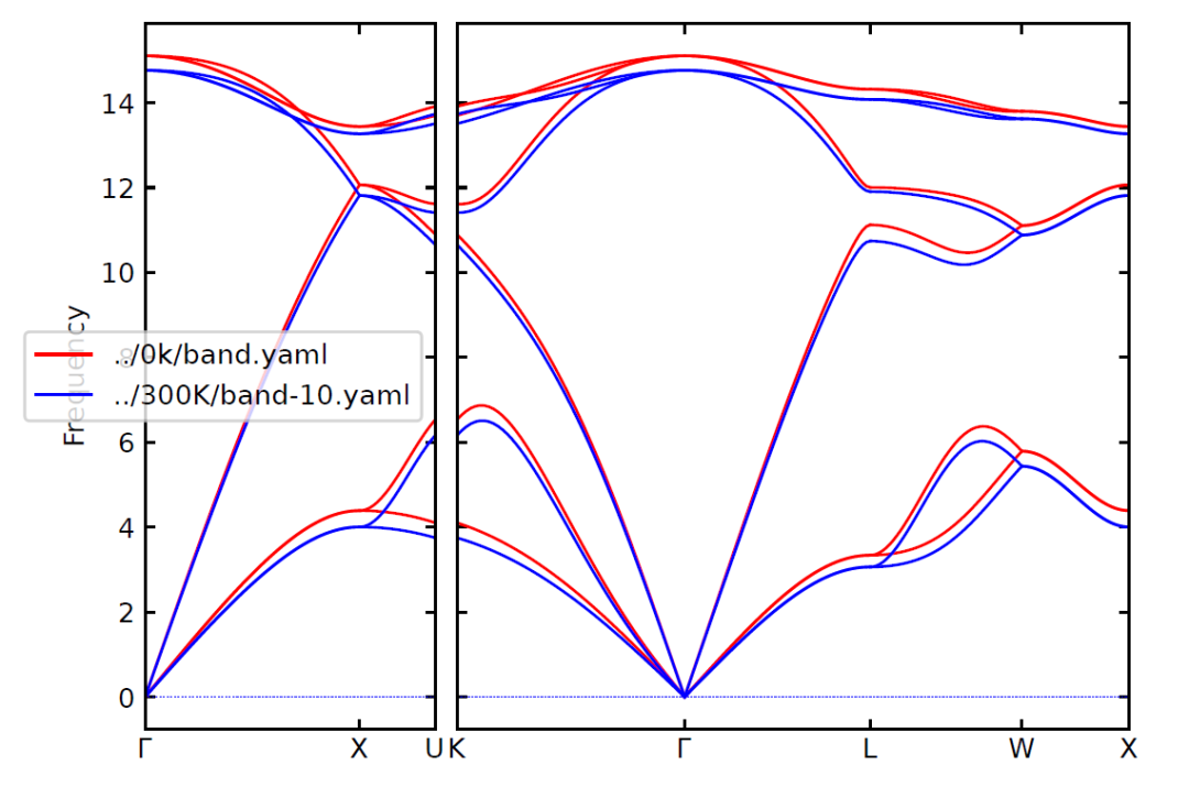 0K和300K下声子谱对比