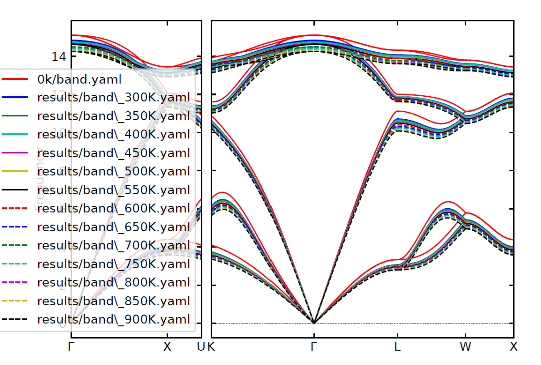 功能: 计算300-1000K每50K的温度依赖力常数并导出能带数据**