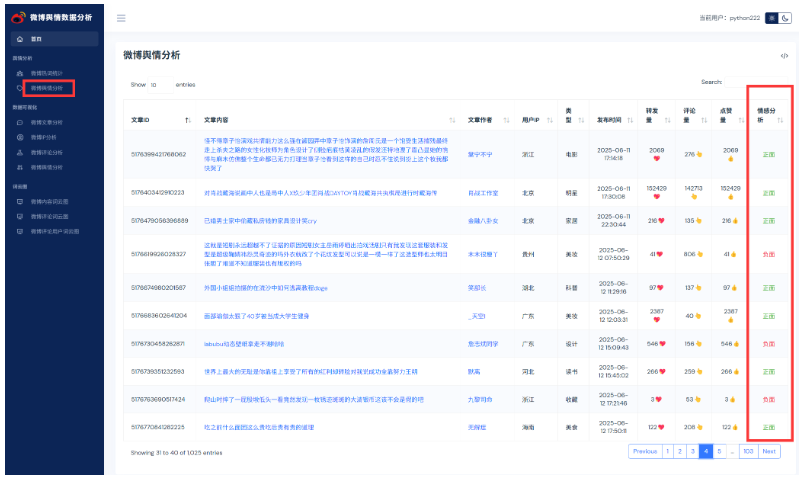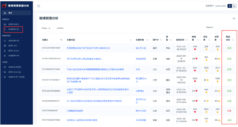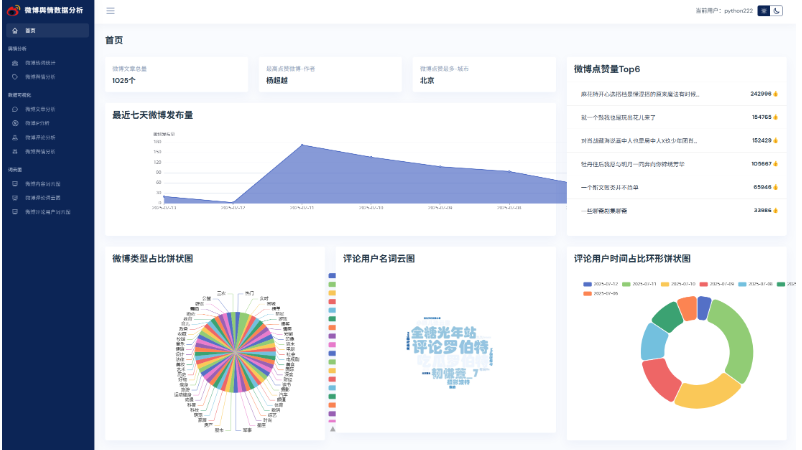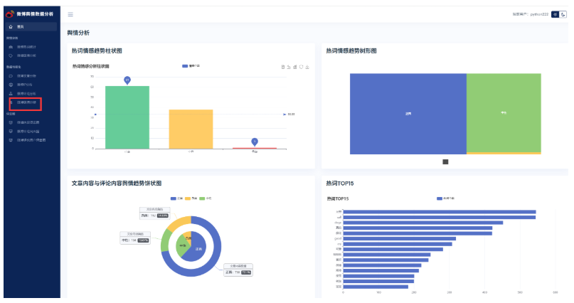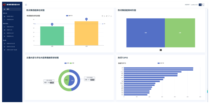 基于python微博舆情分析可视化系统(flask+pandas+echarts) 项目源码本地运行下。
