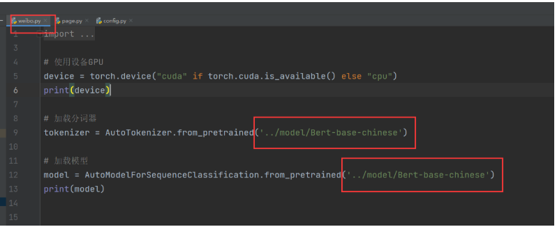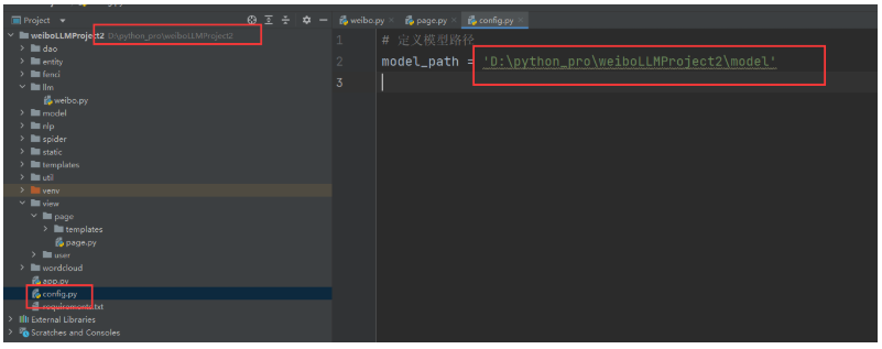 接下来,weibo.py里把相对路径,改成绝对路径,使用config.py里的model_path属性;