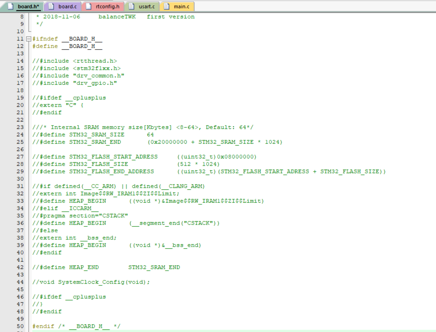 3、注释掉 board.h 的内容;