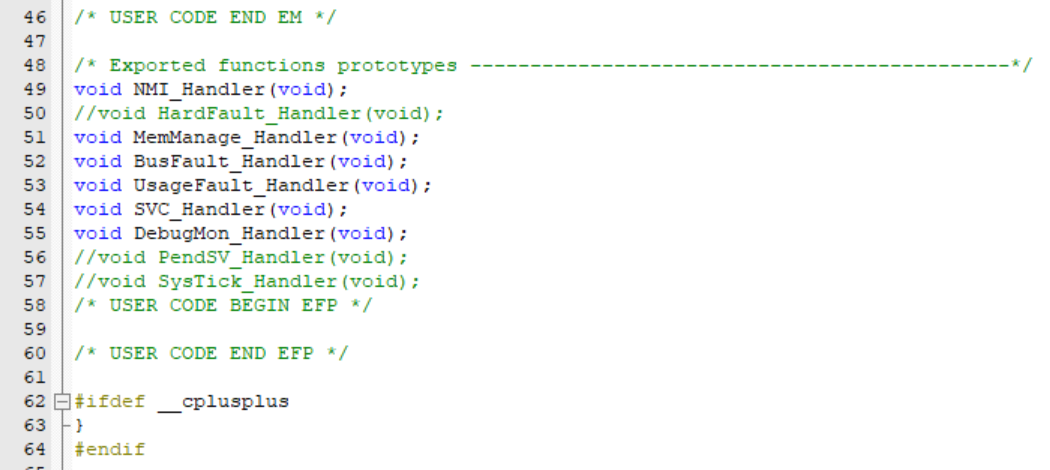 4、存在有重定义,故在 stm32f1xx_it.h 则注释掉 PendSV_Handler,SysTick_Handler, HardFault_Handler;