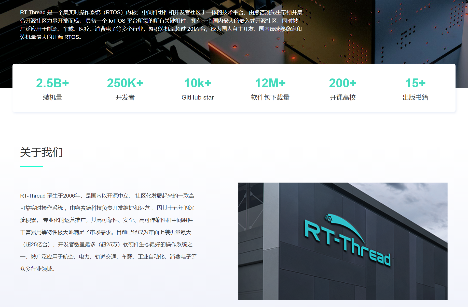 RT-Thread(Real Time-Thread)是一款诞生于 2006 年的国产开源实时操作系统(RTOS),由熊谱翔先生创始,上海睿赛德科技负责开发维护和运营,遵循 Apache License v2.0 开源协议,可以进行免费商业化的嵌入式操作系统。RT-Thread 已从单一实时内核发展为完整的物联网操作系统平台,累计支撑全球超过 25 亿台设备运行,社区开发者规模突破 30 万。