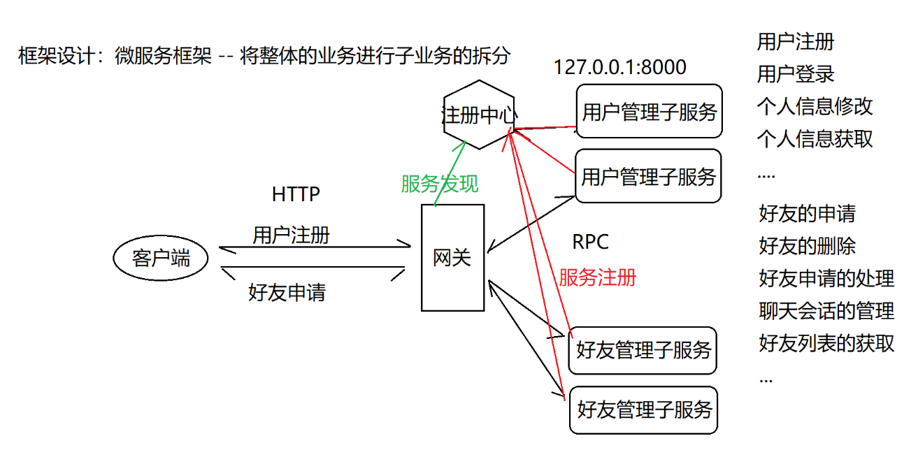 客户端是与网关进行直接连接的,网关收到客户端的一条消息,需要对消息进行转发,但是网关它自己不知道要转发给哪个用户,那么网关就来询问这个消息转发子服务,获取转发的用户列表。