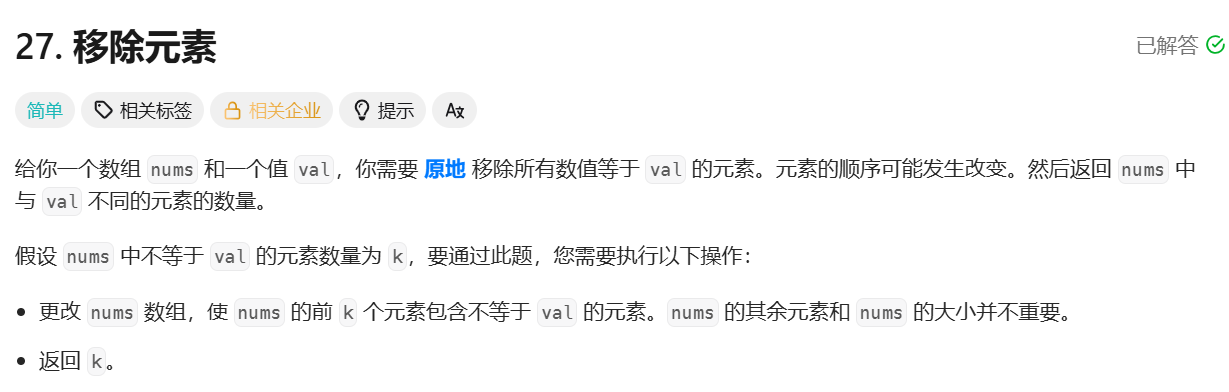 数组中的元素是连续不间断的,因此移除元素,其实是被移除元素的下一个元素覆盖掉被移除元素,我们可以用一个快指针(fast)遍历这个数组,寻找我们新数组的值,如果原数组中的元素不等于val,则将快指针寻找到的数赋值给慢指针(slow的值对应新数组新存入元素下标),由慢指针存入新数组,直到快指针所指元素等于val,跳过该数,继续遍历。最终新数组中的元素个数其实就是slow的值(每存入一个数,slow++)