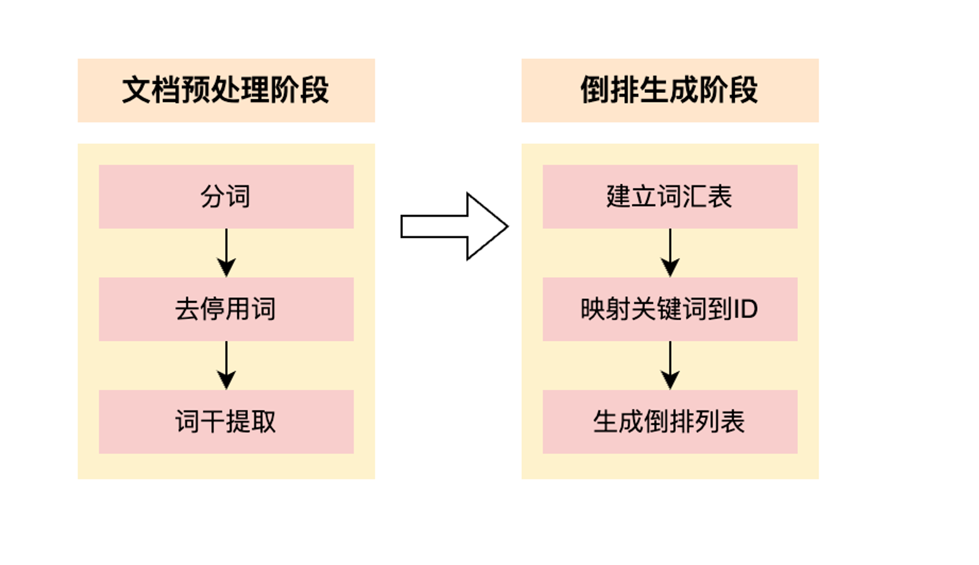 构建倒排索引是一个复杂而关键的过程,它涉及多个步骤,可以归纳为两个阶段: