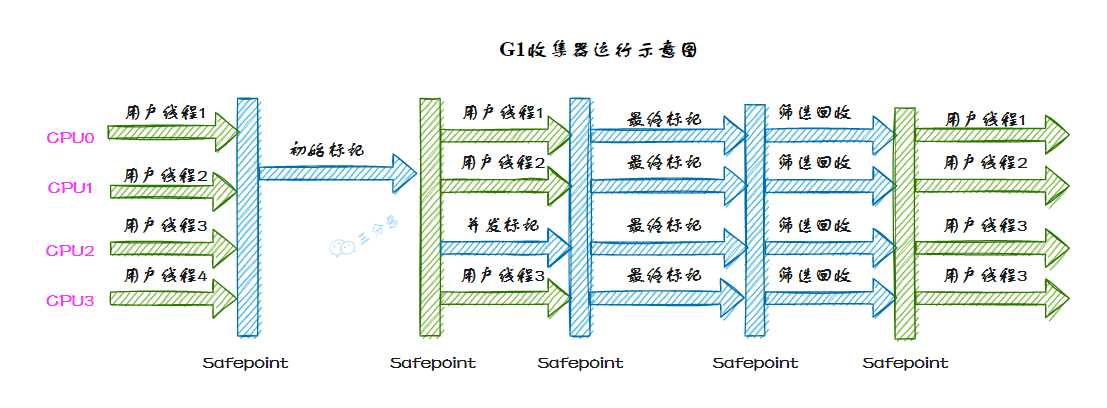 CMS 在此基础上进行了改进,通过并发执行来减少 STW 时间,会在初始标记和重新标记阶段触发 STW。