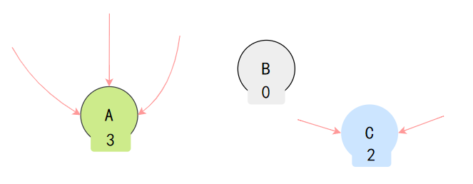 - 缺点 :JVM 早期并未采用此方法 ,因为它很难解决循环引用的问题(即对象A引用B,B引用A,除此之外无其他引用,计数器都不为0,但实际上它们都无法被访问)。