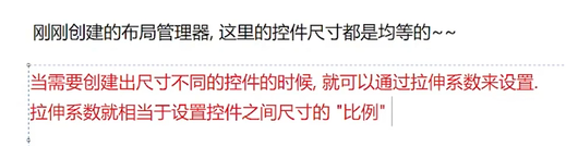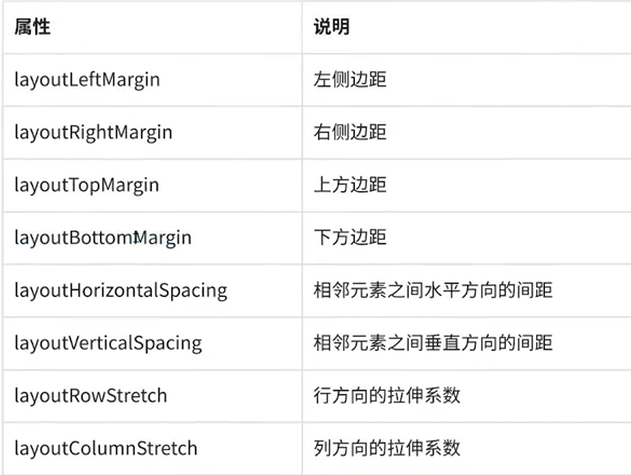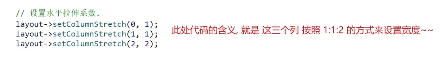 通过设置 layoutRowStretch(行拉伸)或 layoutColumnStretch(列拉伸)属性,可以定义不同行列之间的尺寸比例。