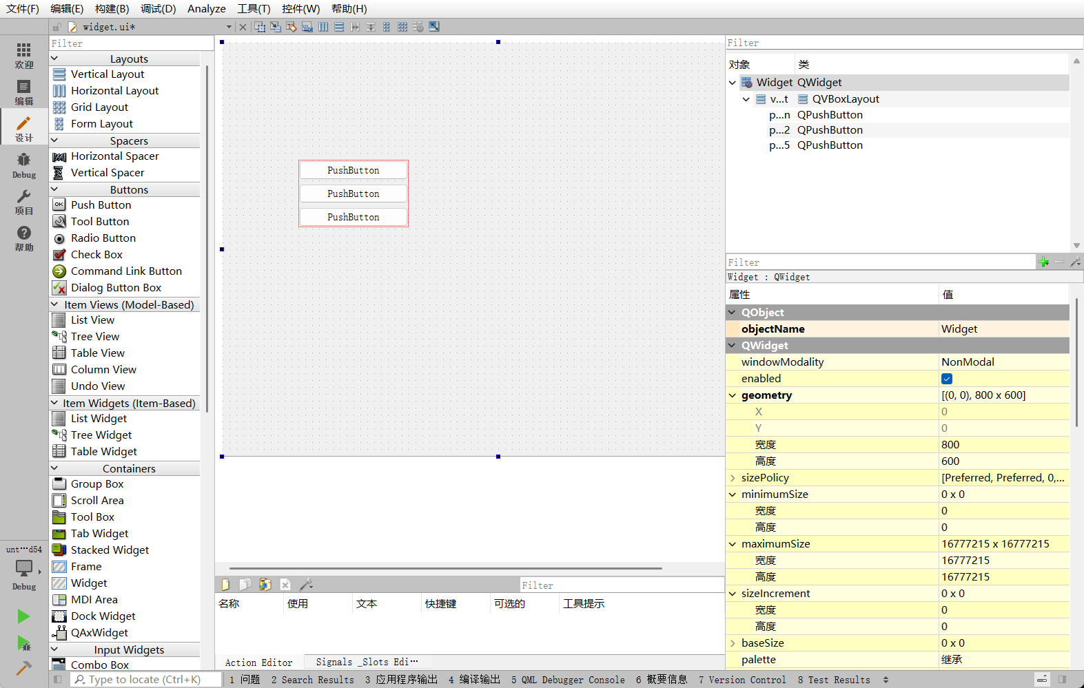 // 新创建三个按钮,使用垂直布局管理器管理起来