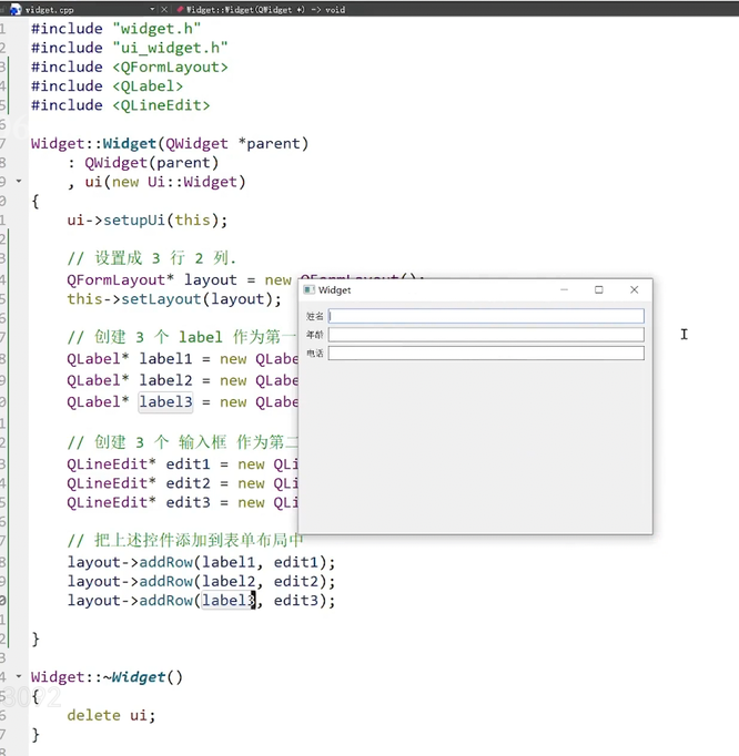 在开发登录界面、设置面板或数据录入窗口时,最常见的模式是"标签(Label)+ 输入框(Input Widget)"的成对出现。虽然使用网格布局可以实现这一效果,但 Qt 提供了更为语义化且便捷的 QFormLayout。