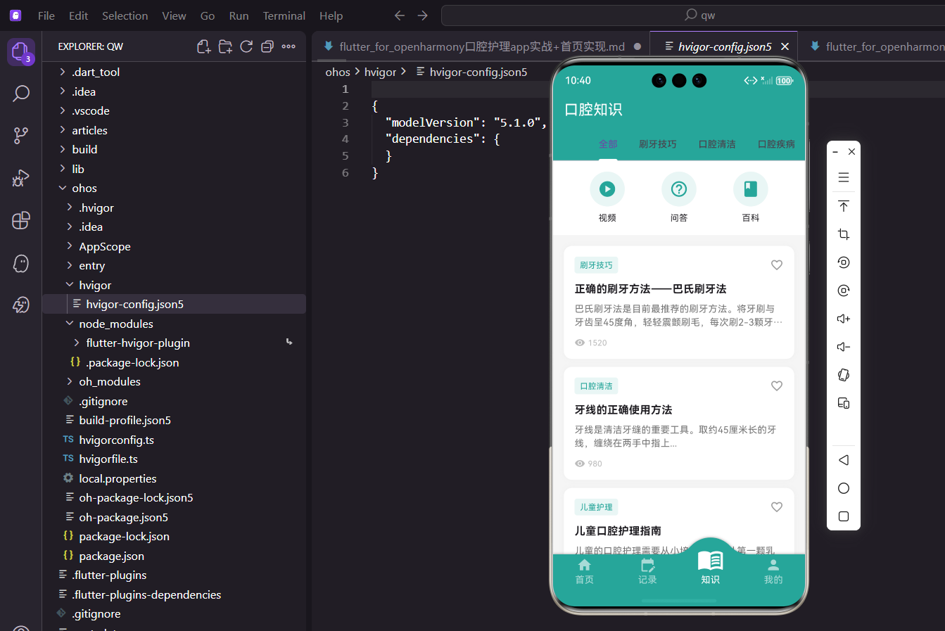 文章详情页展示完整文章内容,视频列表页展示教学视频,问答页提供常见问题解答,百科页提供口腔知识词条。