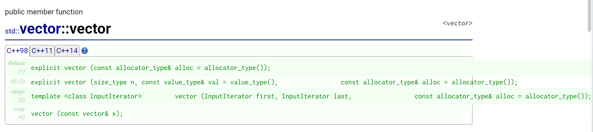 vector(size_t n, const T& val = T()) ://这个地方T如果是自定义类型,就调用T的默认构造函数;如果是内置类型,C++也做了处理,int()就是0,int(1)就是1