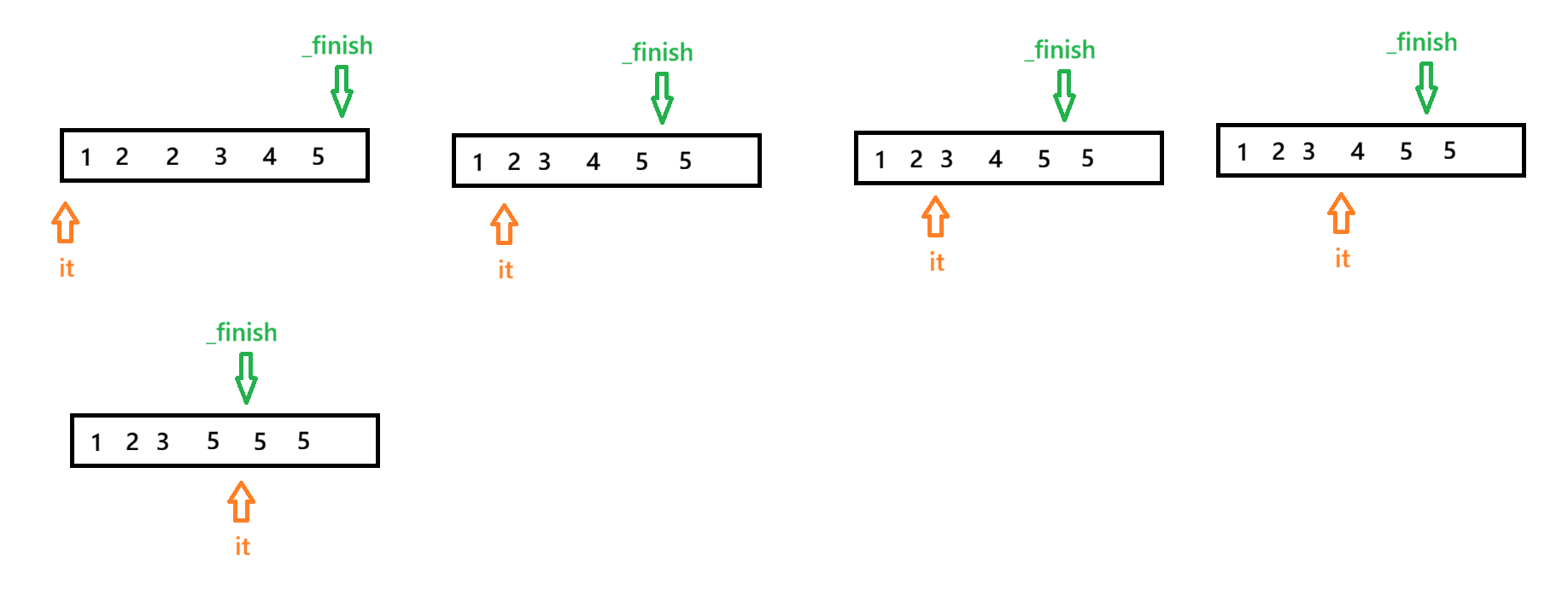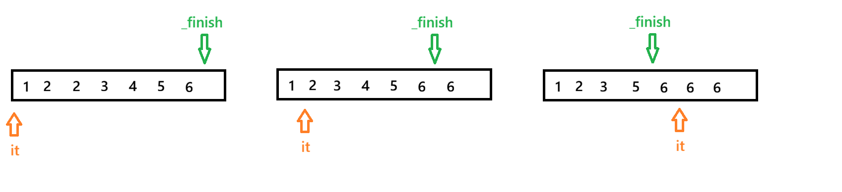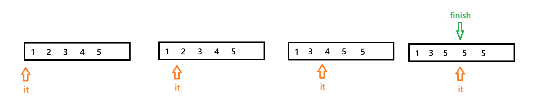 末尾的6erase之后,it和_finish的指向如上图,it再次进入for循环,解引用发现是偶数,然后就erase,断言错误