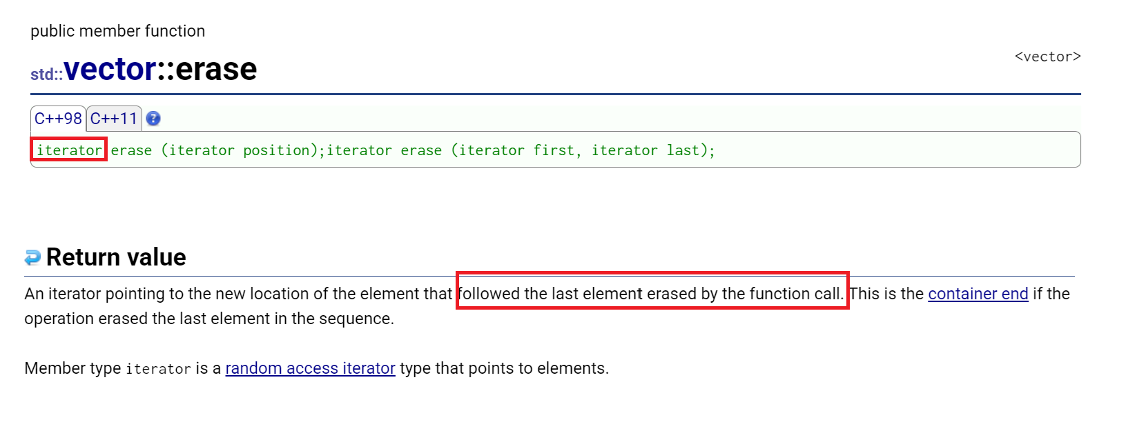 和上面insert类似,erase之后也涉及迭代器失效的问题,