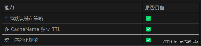 Spring Cache 本质上是一个缓存抽象层,它并不关心你底层用的是 Redis、EhCache 还是 Caffeine,它只定义了: