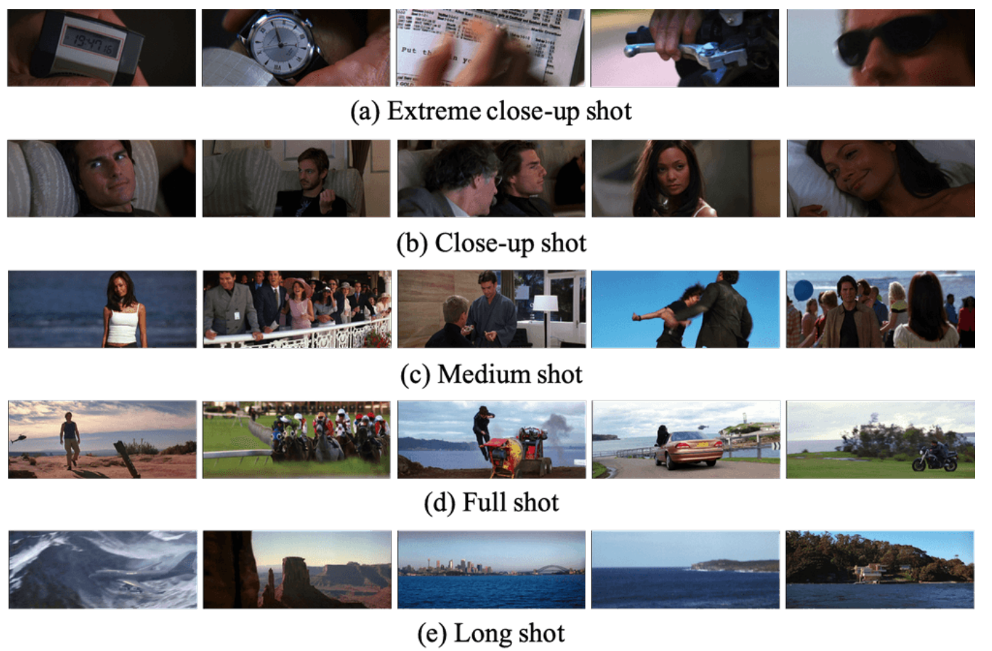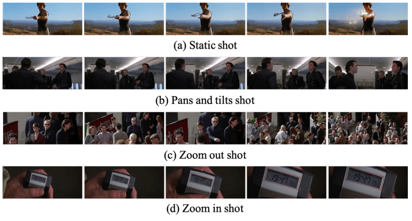我们标注了镜头中两种常用的电影风格标签[26]:视角尺度描述了镜头帧中主体的占比,镜头运动描述了摄像机的运动或镜头的变化。