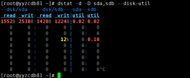 [root@yyzcdb81 ~]# dstat -d -D sda,sdb --disk-util