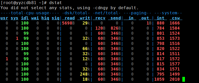 [root@yyzcdb81 ~]# dstat --list