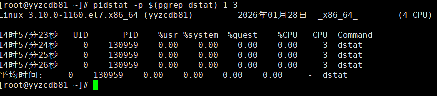 pidstat -p $(pgrep dstat) 1 3
