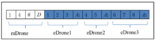 本文针对 HDDPBO 设计了一种基于标签规则的染色体编码策略,该编码方式在单一染色体中同时表示母机路径与多架末端机路径,并通过节点重复规则隐式标识末端机的起飞点、配送节点及回收机场。解码过程中可依据重复节点准确划分母机与各末端机的独立航线,从而完整刻画协同配送过程。