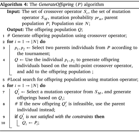 本文设计了一种由多点交叉与变异搜索组成的后代生成算法,采用锦标赛选择从父代种群中选取个体,并基于子区域结构实施多点交叉操作,每个子区域对应一个交叉点,从而高效重组母机与末端机的协同路径;引入多种变异算子对后代进行局部搜索以增强解的多样性。