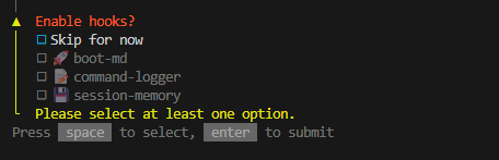 boot-md:启动时自动加载一段markdown文本当默认引导内容。常用于把你的规则、偏好、项目背景在每次启动时塞进去。