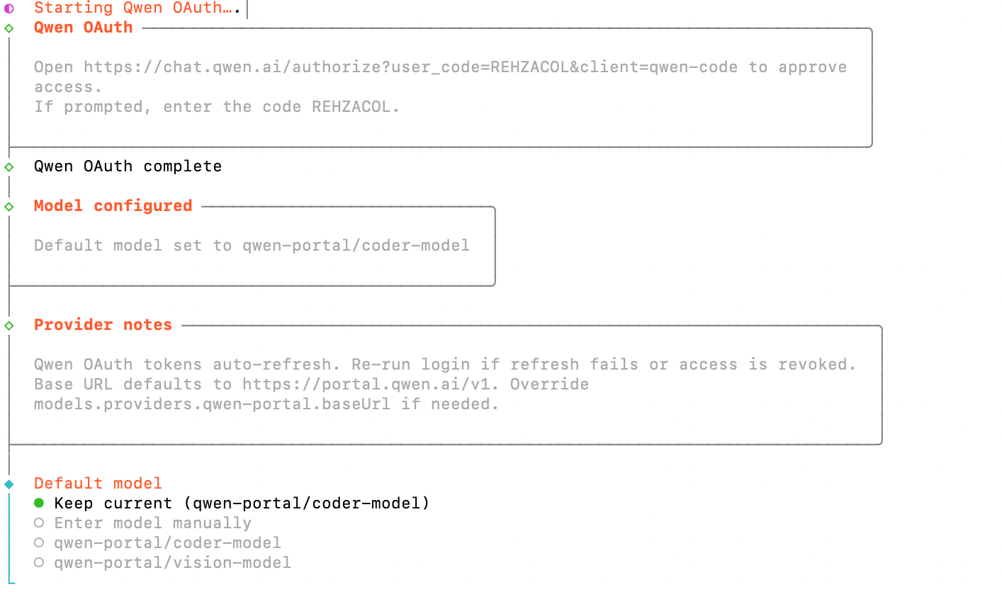 | Qwen OAuth | 通过阿里云官方 OAuth 授权登录 |