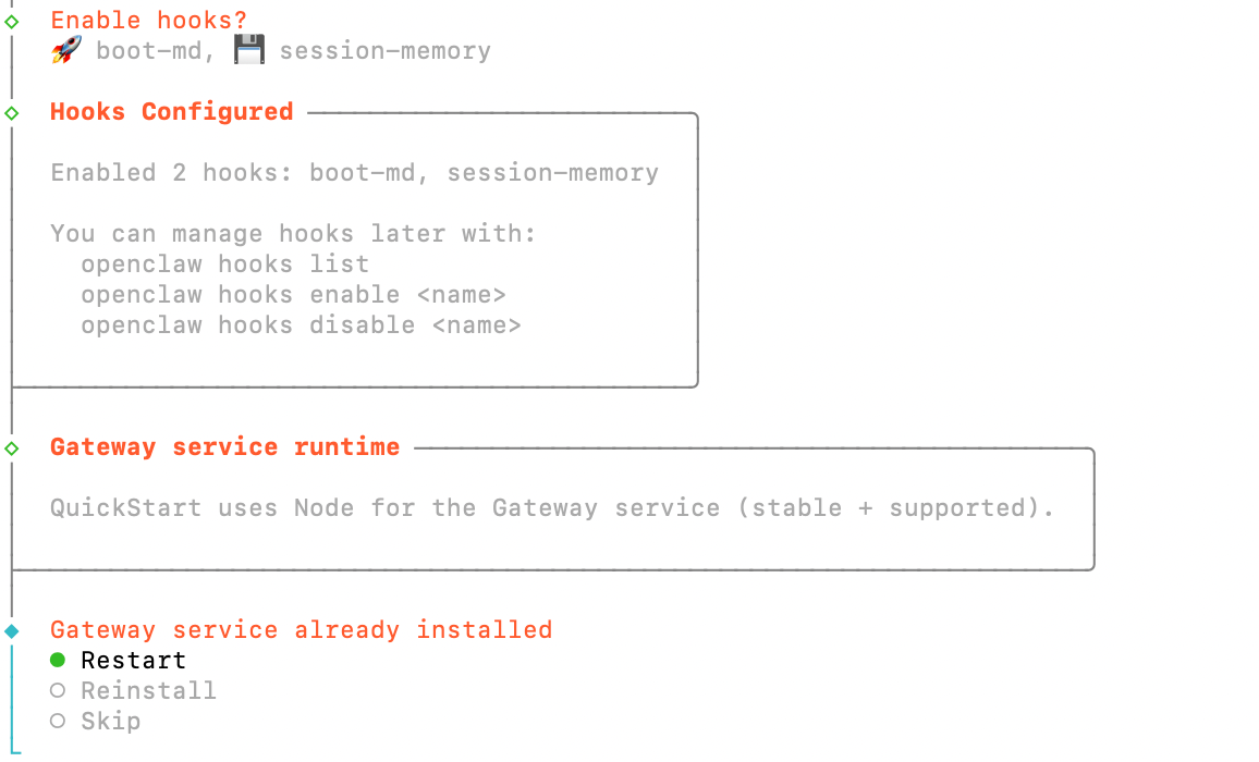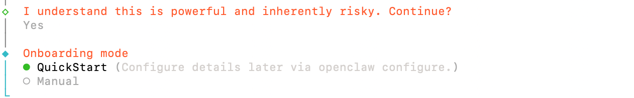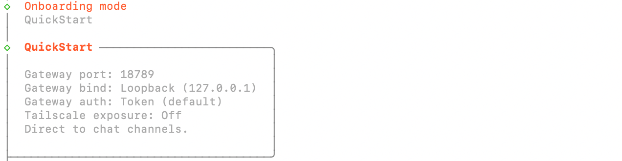 | QuickStart | 使用推荐的默认配置先跑起来,细节之后再用 openclaw configure调整 |