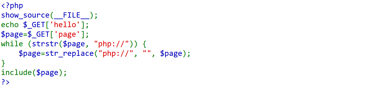 $page的值,而且使用了循环语句,一旦识别到page值中存在php://,会将其改为空格,不断循环,直至不存在为止,简单理解为过滤掉了php://