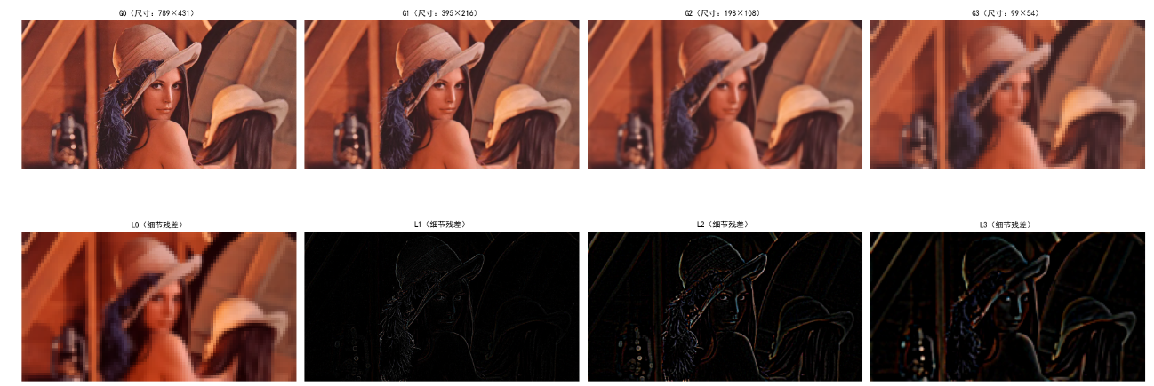- 图像重建:通过"上采样+叠加残差"的方式,将多尺度分解的图像还原为原始尺寸,验证了多尺度处理的可逆性;